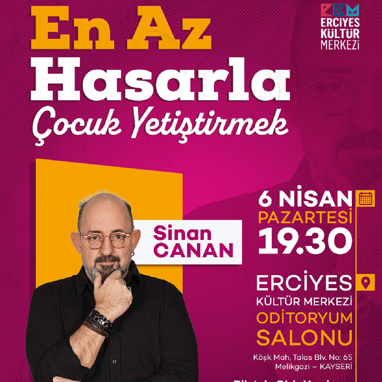 Eğitimci ve yazar Sinan Canan, çocuk gelişimi, ebeveyn tutumları ve sağlıklı iletişim üzerine önemli bilgiler paylaşacağı “En Az Hasarla Çocuk Yetiştirmek” semineriyle katılımcılarla buluşuyor.